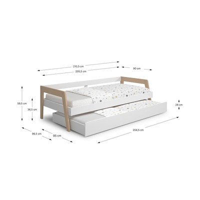 90x200 cmРазтегателноС място за съхранениеС включена подматрачна рамкаОт масивен борOбработка на повърхността: лакБяло