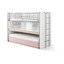 Дизайнът на леглото включва решетка и дава възможност за гъвкаво разпределение. Стълбата може да се монтира от двете страни, което увеличава вариативността на подредбата. Долното легло, разтегателното легло и бюрото могат да се разтягат при необходимост, което улеснява адаптирането на пространството за различни дейности.