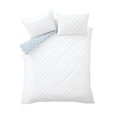Двойно , с копчета, двустранно, памучно, на цветя, бяло/синьо , 200x200 cm