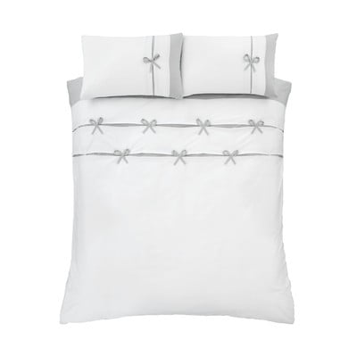 Бяло-сиво двойно удължено спално бельо 230x220 cm Milo Bow – Catherine Lansfield