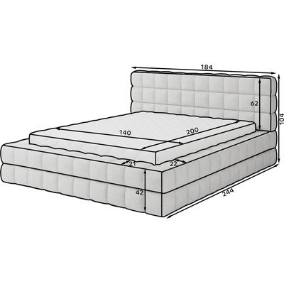 140x200 cm, с място за съхранение, с включена подматрачна рамка, тапицирано, от прежда с примки от букле, бяло