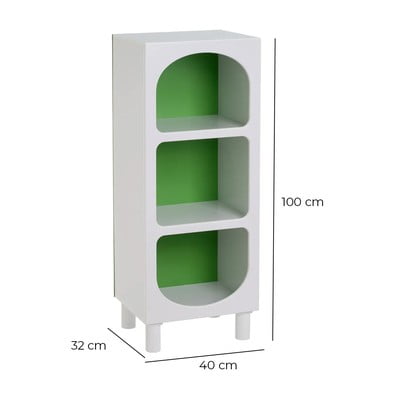 От МДФ, oбработка на повърхността: боя, бяла/зелена, ширина 40 cm, височина 100 cm, дълбочина 32 cm