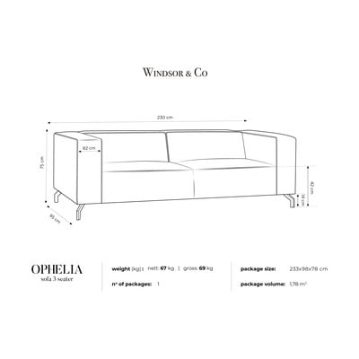 ЧеренТриместенШирина 230 cmДълбочина 95 cmДълбочина на седалката 59 cm