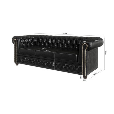 От изкуствена кожа, честърфийлд, черен, водоустойчив/подходящ за домашни любимци/устойчив на петна, двуместен, ширина 203 cm