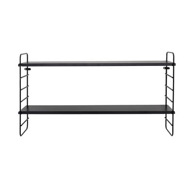 Стенен рафт NorthНа няколко нива, метален, oбработка на повърхността: прахово покритие, декор от матирано дърво, черен, ширина 65 cm, височина 35 cm, дълбочина 15 cm