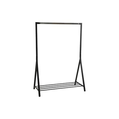 Brent е метален стелаж за дрехи в черен цвят с хромирана пръчка за гардероб. Подходящ е като алтернатива на гардероба или като закачалка за дрехи в коридора с рафт за обувки.