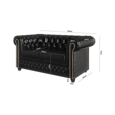 Диван YorkОт изкуствена кожа, за ежедневно спане/сгъваем, честърфийлд, черен, водоустойчив/подходящ за домашни любимци/устойчив на петна, двуместен, ширина 148 cm