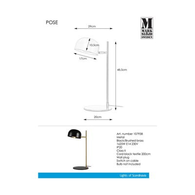 Настолна лампа PoseС метален абажур, метална, за контакт, черна/ в златист цвят, височина 49 cm