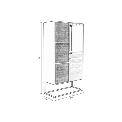 РатановОт МДФOбработка на повърхността: лакЧерен/в естествен цвятБрой бутилки 16Черен/в естествен цвятШирина 80 cmВисочина 175 cmДълбочина 38 cm