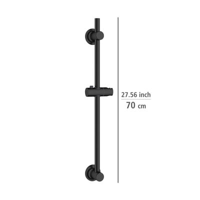 Душовата релса от Wenko е изработена от висококачествена неръждаема стомана. Подвижната скоба се използва за закрепване на ръчната душ глава и може да се регулира в различни позиции.
