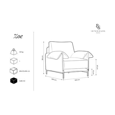 Подарете си елегантност и комфорт с фотьойлите Zoe от Interieurs 86. Изтънченият дизайн подобрява и обединява интериора в модерен стил. Фотьойлът се състои от гъсто тъканна материя, която е приятна на допир. Тя е много устойчива на протриване, което значително намалява риска от повреда. Защитният слой предотвратява проникването на мръсотия и попиването на разлети течности. По този начин разливите могат да бъдат отстранени без използването на почистващи препарати.