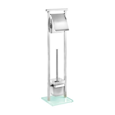 Практична комбинация от четка за тоалетна и поставка за тоалетна хартия. Използваните материали - метал в комбинация със стъкло - са добра идея по отн...