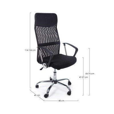 Тапициран, подвижен/с регулируема височина/с подлакътници, черен, капацитет на тежестта 110 kg, височина на седалката 57-57 cm