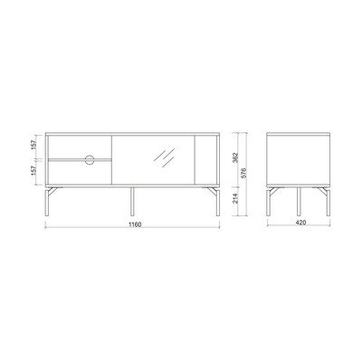 ПДЧOбработка на повърхността: меламин/oбработка на повърхността: прахово покритиеДекор от матирано дървоЧернаШирина 116 cmВисочина 55 cmДълбочина 42 cm