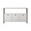 Конзолна маса Solace от Kalune Design. Тя предлага практично място за съхранение на вещи и отворен рафт за излагане на декорации.