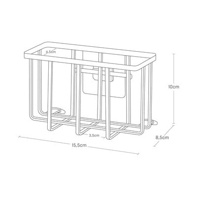 Кошницата се закрепва лесно към двете куки за стена, включени в опаковката. Самозалепващото се фиксиращо фолио осигурява сигурно закрепване върху гладки и непорьозни повърхности без необходимост от пробиване.