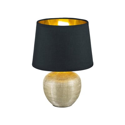 Настолна лампа LuxorС текстилен абажур, текстилна/керамична, за контакт, синя/ в златист цвят, височина 26 cm