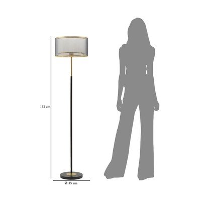 С текстилен абажур, черна/ в златист цвят, височина 153 cm