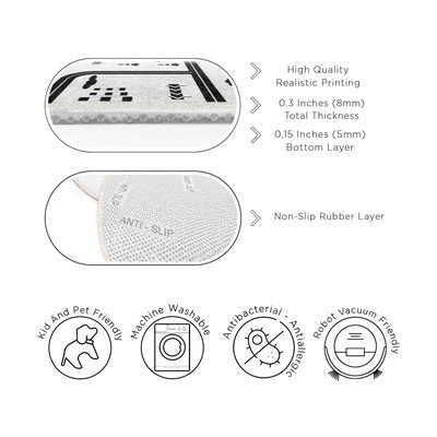 Килимче за игра In My Town от марката Mila Home. Неговият черно-бял дизайн с мотив на град предразполага към безкрайни детски игри и освен това е лесен за пране.