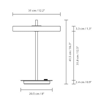 Настолната лампа Asteria Table с възможност за димиране от UMAGE съчетава елегантност и функционалност. Белият метален абажур се допълва от месингов елемент, преминаващ през центъра му. Лампата е оборудвана с вграден LED панел с разсейвател, който осигурява приятно меко осветление. Лампата има вграден USB порт за зареждане на телефон, който може да се използва дори когато светлината е изключена.