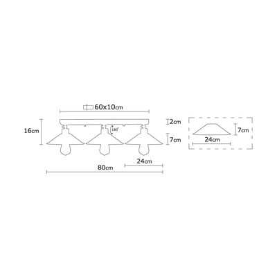 С огъваща се структура, с метален абажур, метално, черно, 24x80 cm, височина 17 cm