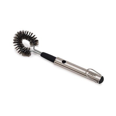 Четката за почистване на GrillOut от Joseph Joseph е удобен помощник за поддръжка на грила. Благодарение на здравия си косъм и кръглата си форма тя лесно отстранява загорели остатъци от храна дори от труднодостъпни места.