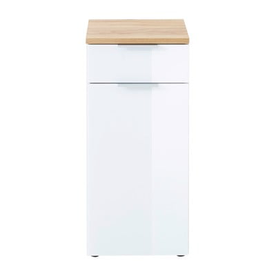 Шкаф за баня PescaraНисък, от декор от дъб , ПДЧ, oбработка на повърхността: меламин, декор от гланцово дърво, бял/в естествен цвят, ширина 39 cm, височина 86 cm, дълбочина 34 cm