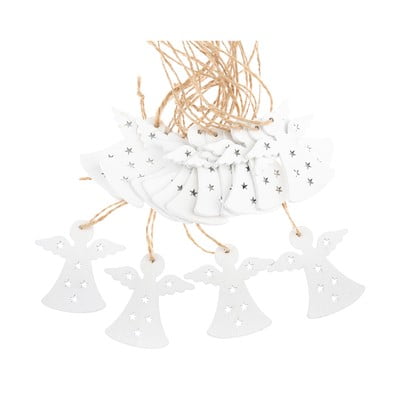 Очарователните бели дървени ангелчета с ютена канап се вписаха прекрасно в нашата нетрадиционна коледна елха. Точно това, което търсех.