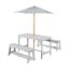 Outdoo+ на Roba е детски градински комплект, който включва две свободностоящи пейки, маса и чадър. Той позволява на децата да се наслаждават на престоя си на открито и да играят на чист въздух.