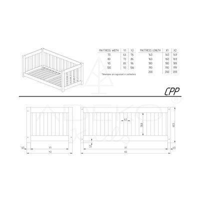 Детско легло CPP80x200 cm, с включена подматрачна рамка, от масивен бор, oбработка на повърхността: необработен/oбработка на повърхността: изчеткан, в естествен цвят
