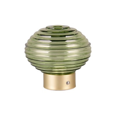 LED, затъмняваща се, със стъклен абажур, метална/стъклена, с USB, зелена/ в златист цвят, височина 14,5 cm