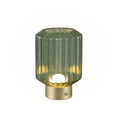 LED, затъмняваща се, със стъклен абажур, метална/стъклена, с USB, зелена/ в златист цвят, височина 19,5 cm