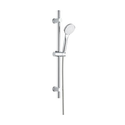 Комплектът включва ръчен душ с диаметър 9,5 см с пет различни режима на потока, душ-стълб от неръждаема стомана с дължина 70 см и душ-шланг от неръждаема стомана с дължина 150 см. Маркучът е устойчив на натиск, разтягане и счупване. Благодарение на универсалната ½" връзка душ комплектът е подходящ за всички стандартни душ системи и проточни нагреватели. Монтажът е лесен благодарение на плъзгащата се стенна скоба, която позволява да се използват съществуващите пробити отвори. Поддръжката се улеснява от дюзите на душ-главата, които лесно се почистват от варовик.