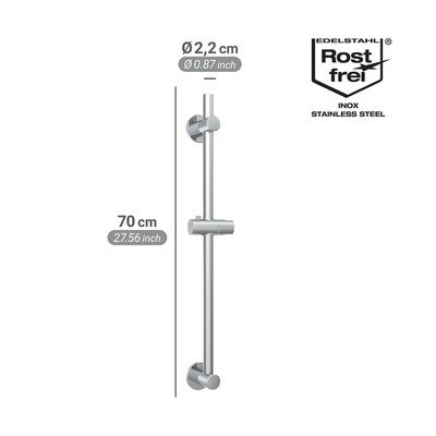 С дължина 70 см и диаметър 22 мм, този бар се отличава с иновативна система за монтаж без необходимост от пробиване. Благодарение на усъвършенстваната система за залепване тя може лесно и бързо да се прикрепи към стената, което ви спестява време и усилия. Същевременно при необходимост може да бъде отстранена без остатъци и без да се повреди повърхността, което ще оцените, ако се наложи да промените дизайна на банята си.