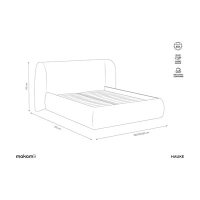 Светлосиво двойно тапицирано легло с място за съхранение и включена подматрачна рамка 160x200 cm Hauke – Makamii
