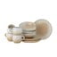Всяко парче е уникално благодарение на петнистата глазура, която придава дълбочина на дизайна. Комплектът е изработен от каменна керамика и е подходящ за миене в съдомиялна машина и микровълнова фурна. Комплектът включва 4 чаши (диаметър 9 см, височина 8 см, 275 мл), 4 чинии (диаметър 20 см, височина 1,5 см) и 4 купи (диаметър 16,5 см, височина 5 см, 525 мл).