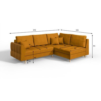 Ъглов диван (десен ъгъл) в цвят горчица Ariella - Ropez
