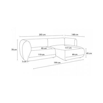 От рипсено кадифе, ляв ъгъл, сив, триместен, ширина 265 cm, дълбочина 148 cm