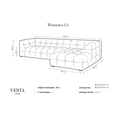 Ако имате нужда от диван, на който можете да настаните група приятели, Vesta от Windsor & Co Sofas е подходящ за вас. Този ъглов диван с мека материя има обработена повърхност, което го прави защитен от течности. Елегантната му визия ще придаде колорит на вашия интериор. Лесно можете да го съчетаете с останалите си мебели.