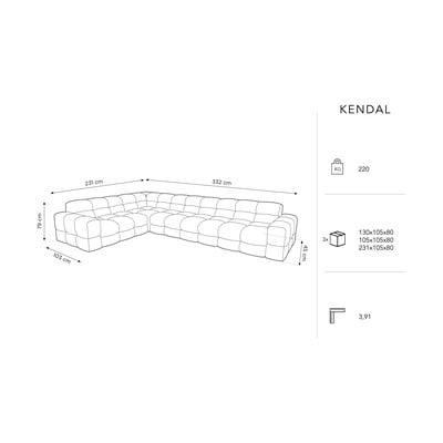 Ъгловият диван Kendal ще доминира в модерните интериори. Кадифената плетена повърхност е мека и приятна на допир. Плетеницата е и много издръжлива, което прави дивана чудесен партньор за собствениците на домашни любимци.
