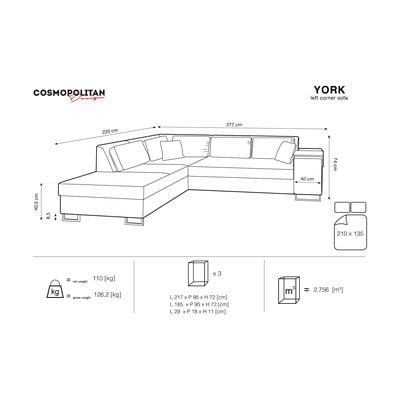 КадифенСгъваем/с място за съхранениеЛяв ъгълВодоустойчив/подходящ за домашни любимциТъмносинЧетириместенШирина 277 cmДълбочина 96 cmДълбочина на седалката 66 cm