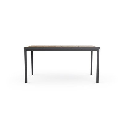 Масата съчетава издръжлива метална конструкция с пластмасов плот с покритие от ясен, което вярно имитира дърво. Тази комбинация гарантира не само привлекателен външен вид, но и висока устойчивост на атмосферни влияния.