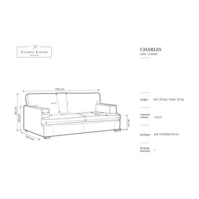 Жълт, двуместен, ширина 170 cm, дълбочина 104 cm, дълбочина на седалката 66 cm