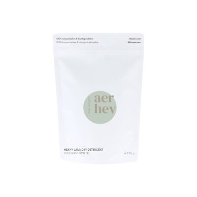 Прахът за пране Aer залага на устойчивост, екологичност и цялостност. Не само ще постигнете чисто и свежо пране, но и ще елиминирате пластмасата - той се предлага в опаковка от компостируема и разграждаща се хартия.