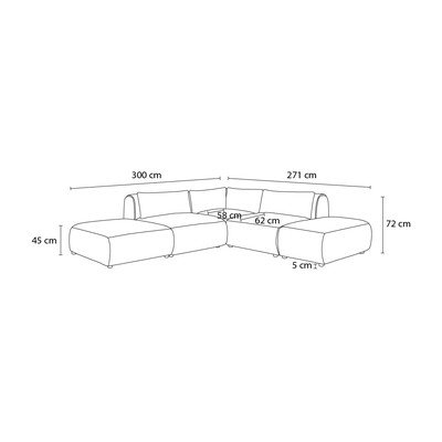 КадифенДесен ъгъл/ляв ъгъл/променлив/L формаВ цвят горчицаДругиШирина 271 cmДълбочина 300 cmДълбочина на седалката 62 cm