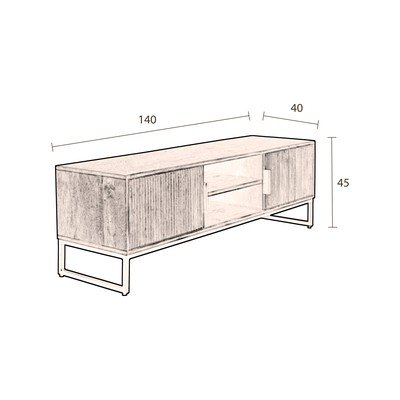 Масичката за телевизор радва не само с просторното си пространство за съхранение, но преди всичко с внимателно подбраните си материали. Желязната структура и основата осигуряват солидна и стабилна основа, която с течение на времето няма да бъде подложена на нежелана корозия благодарение на праховото покритие. Самата врата е изработена от дърво от манго, което може да се похвали с очарователна естествена шарка.
