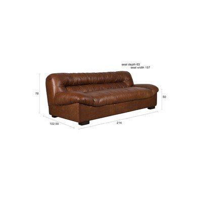 Кожен, кафяв, триместен, ширина 214 cm