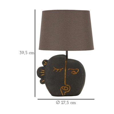 С текстилен абажур, от полирезин, за контакт, кафява, височина 39,5 cm