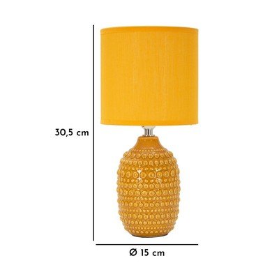 С текстилен абажур, керамична, за контакт, в цвят горчица, височина 30,5 cm