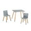 Този комплект детски мебели включва маса и два стола, които са проектирани за удобно и безопасно сядане. Компактният му размер го прави идеален за детска стая или кът за игра. Столовете са с височина на седалката 28 cm и общи размери 54 × 26,5 × 26,5 cm. Масата е с размери 49 × 60 × 50 cm.